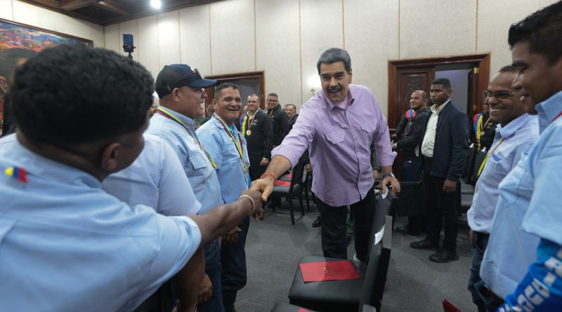 Palacio de Miraflores, Caracas.- Desde el Palacio de Miraflores, el presidente de la República Bolivariana de Venezuela, Nicolás Maduro, otorgó condecoraciones a los miembros de la Brigada Internacional Cuba-Venezuela, en reconocimiento a las labores de apoyo y asistencia técnica realizadas en la región oriental de la isla caribeña, especificamente en Santiago de Cuba.